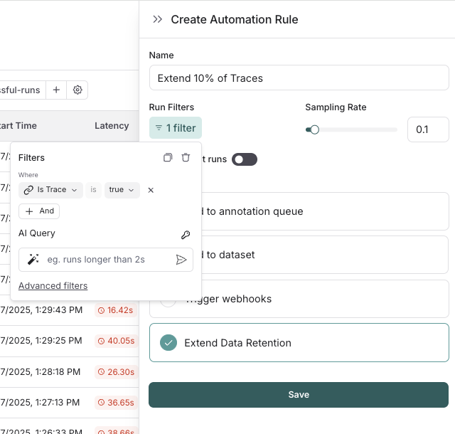 - Traces with specific metadata: For long-term examination of particular features or user flows.
