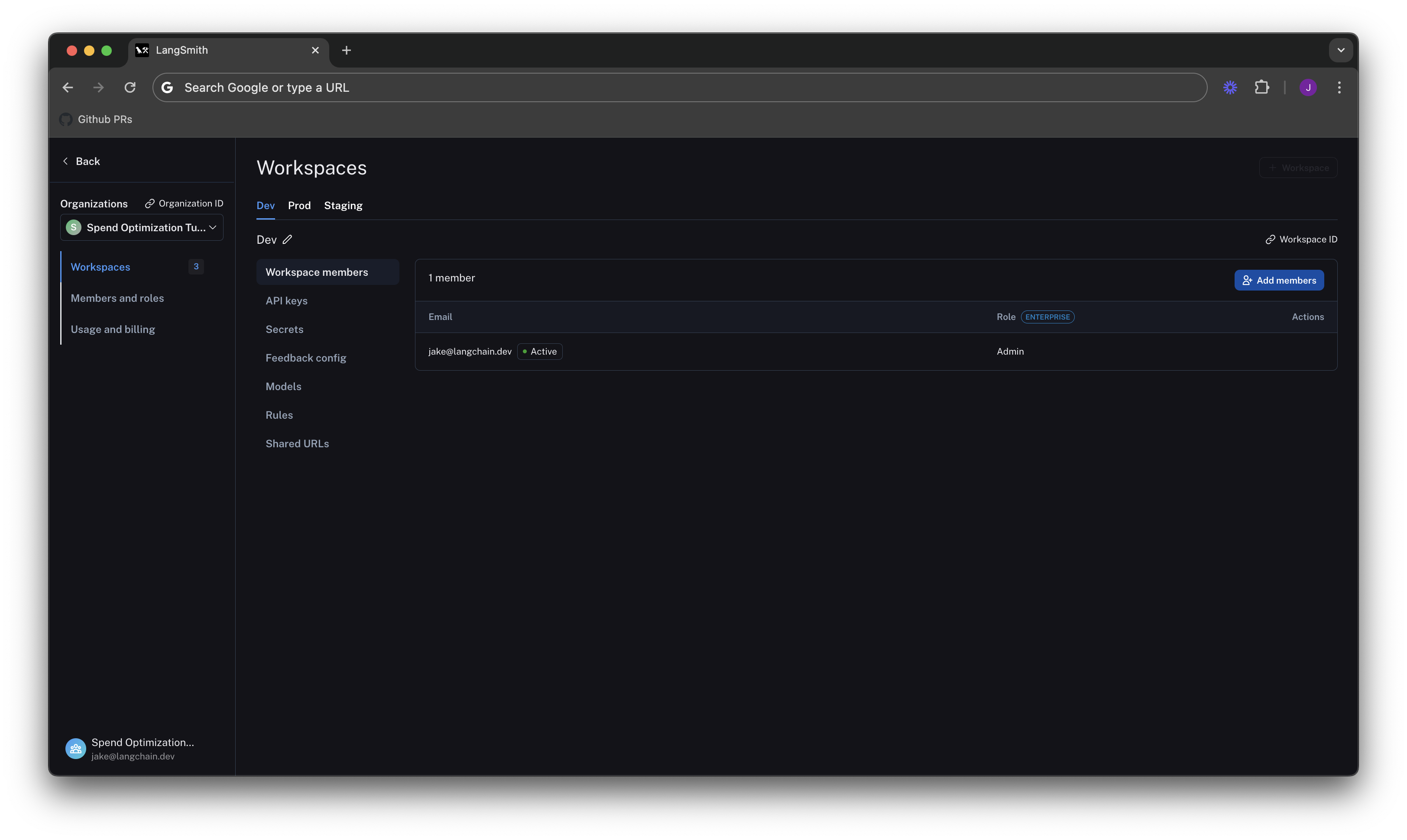 - Review your existing members. Before subscribing, LangSmith lets you remove any added users that you do not want to be included in the bill.